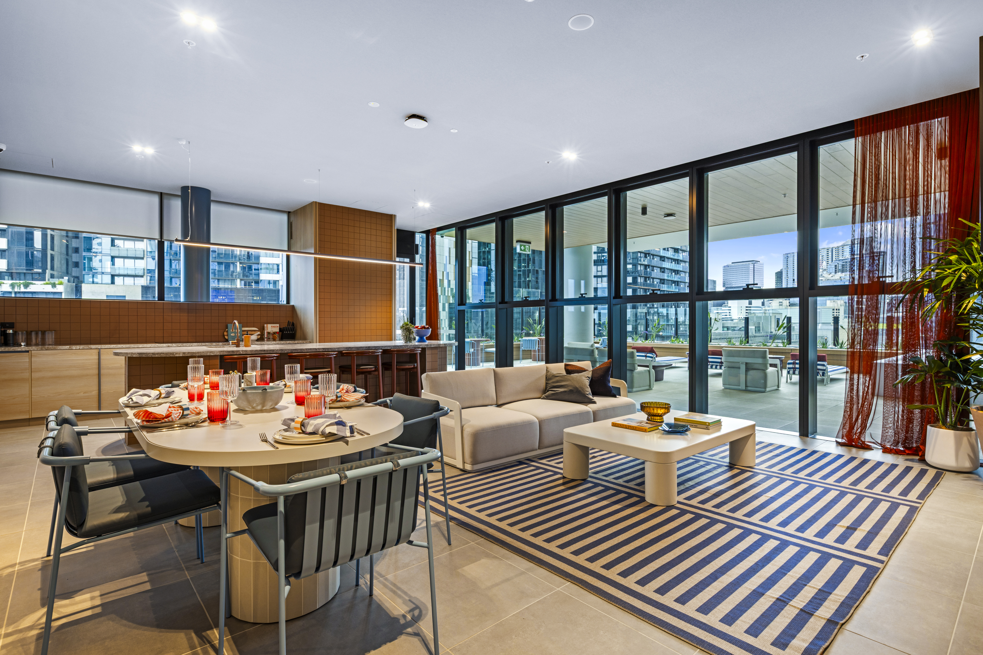 Indi Southbank at Boyd Village is a dynamic vertical community designed with a best practice approach to placemaking and connection. The tower and podium comprise 434 build to rent apartments, ranging from studios to three-bedroom residences, and include at least 40 affordable homes for key workers. It also boasts an exceptional range of resident and neighbourhood amenity, designed to enhance this already vibrant hub.